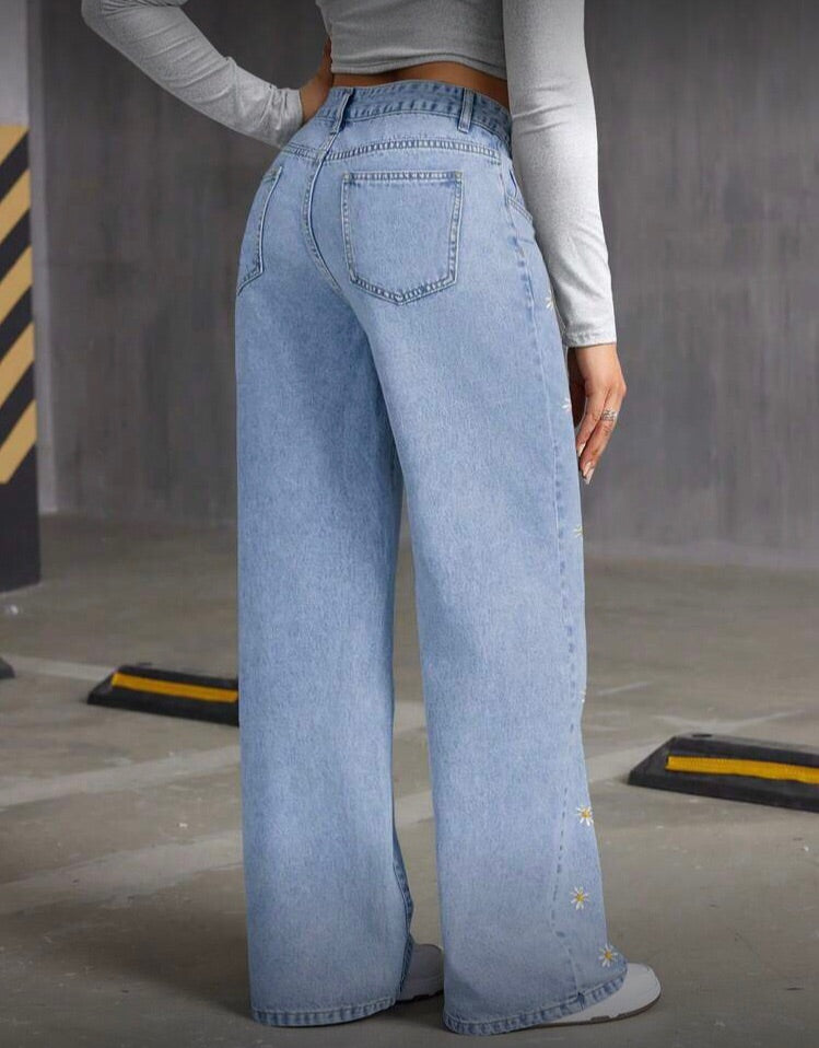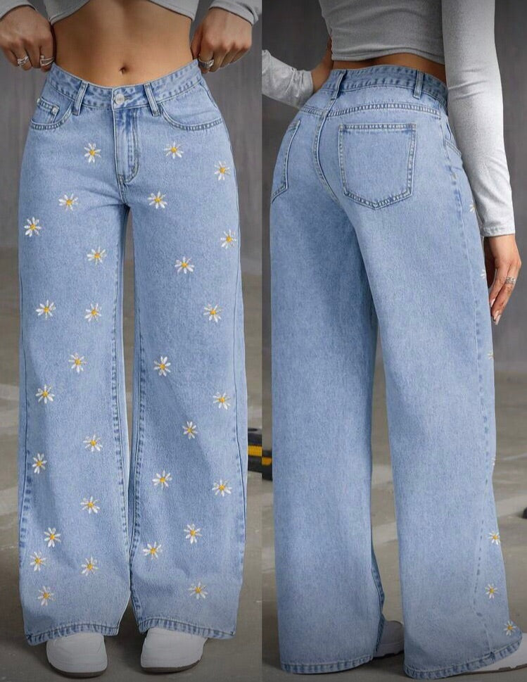Luce un estilo fresco y femenino con nuestro Jean Wide Leg Bordado Margarita. Su corte amplio y elegante se combina con delicados bordados florales que le dan un toque único y encantador. Ideal para crear outfits modernos con un aire romántico y sofisticado.